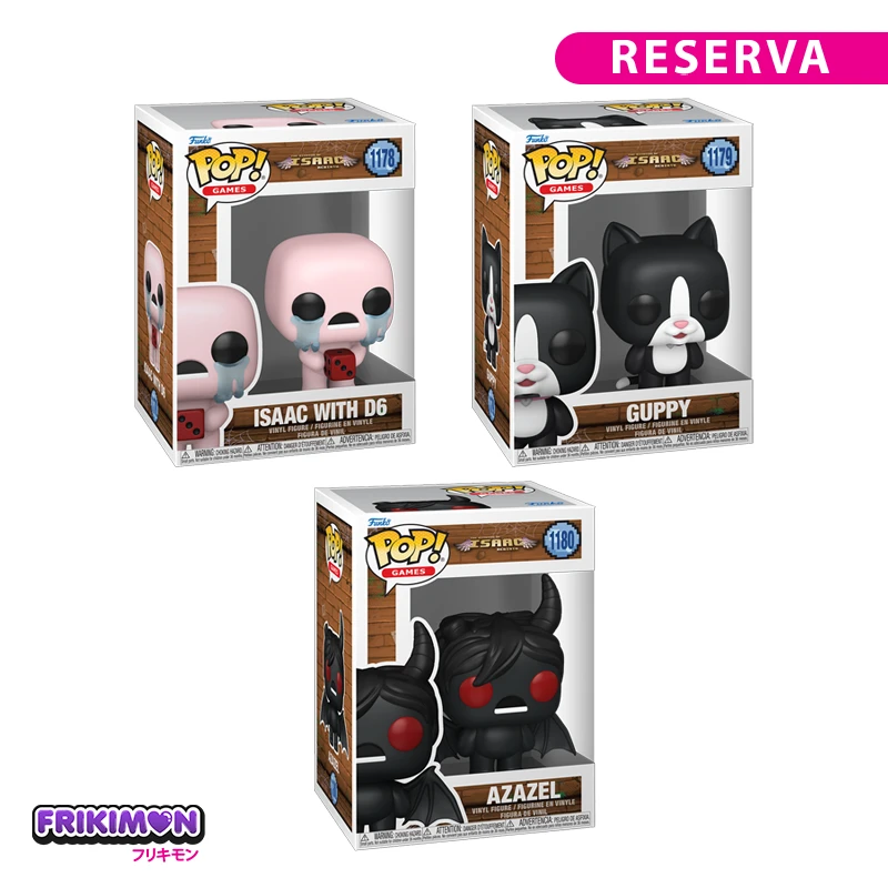 El pack incluye: Funko POP Guppy 1179 Binding of Isaac, Funko POP Azazel 1180 Binding of Isaac y Funko POP Isaac with D6 1178 Binding of Isaac